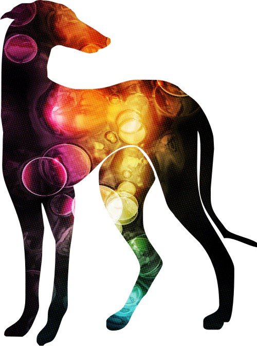 Aufkleber - Bunter stehender Windhund. Das Motiv ist Kontur geschnitten.