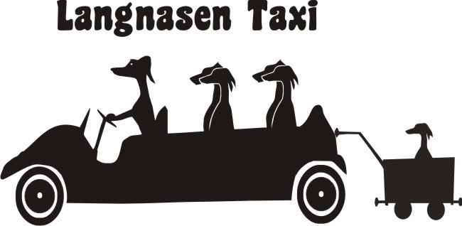Langnasen Taxi mit fünf Galgos mit Anhänger ab Größe 120x250mm