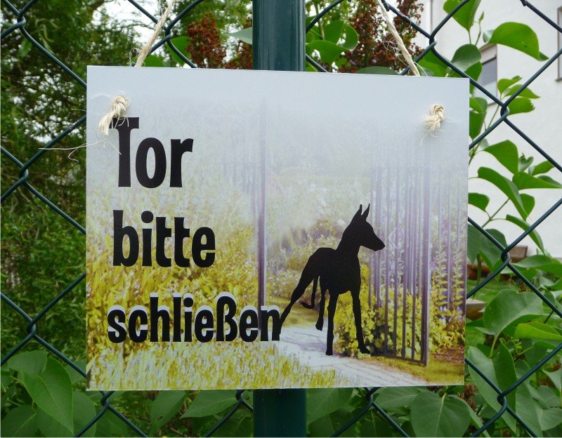 Das Schild kann ganz einfach aufgehangen werden. Weitere Anbringung, beispielsweise mit entsprechenden Klebepads auf glatten Flächen oder mit Acryl. Ausserdem ist das Schild leicht zu durchbohren und kann dann mit Schrauben an der Wand oder mit Kabelbindern am Zaun befestigt werden.