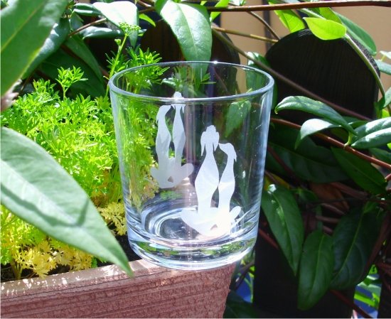 Das Trinkglas ist einseitig verziehrt mit dem Motiv Galgopaar. Alles entsteht in Handarbeit.