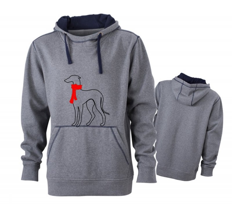 Kapuzen-Sweatshirt mit modischen Kontrastnähten, Druck vorne -Motiv Galgo mit Schal