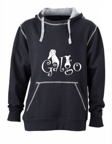 Kapuzen-Sweatshirt mit modischen Kontrastnähten -Motiv Zeichnung Galgos im Wort
